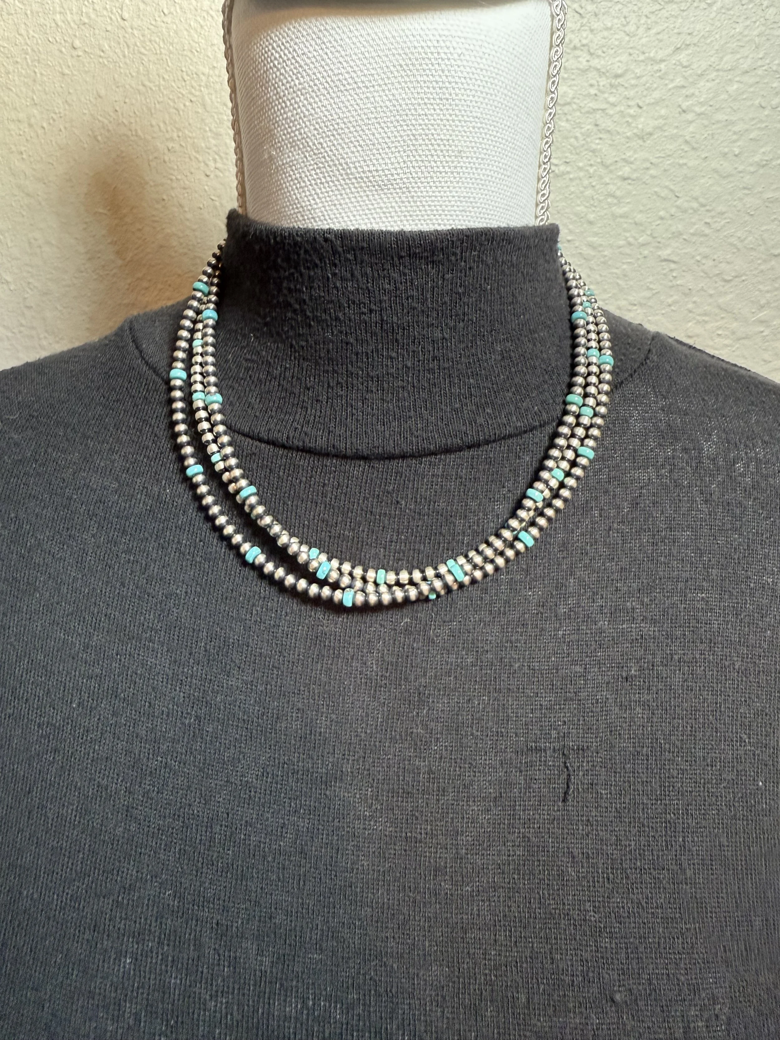 Beautiful kingman turquoise and navajo pearl necklace are perfect to create any stack or worn alone!
